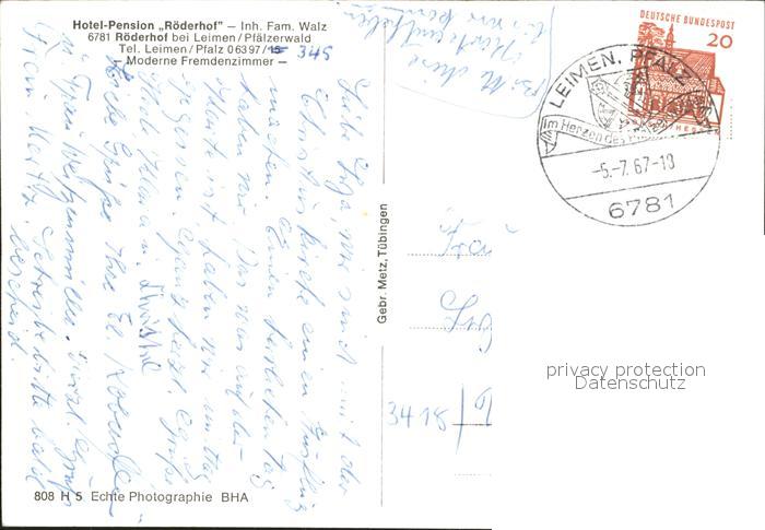 72100352 alte Postkarte Roederhof Pfalz Hotel Pension Roederhof postalisch gelaufen Erhaltung siehe scans KatCode: 11110007340027