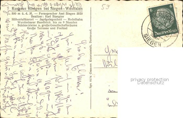 71571320 alte Postkarte Roedgen Siegen Kurhaus Luftkurort postalisch gelaufen Erhaltung siehe scans KatCode: 11110005970040