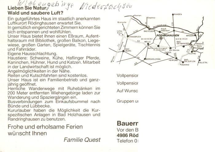 73875416 Roedinghausen Bauernhofpension Quest Pferdekutsche Gaststube Tischtennis Liegewiese postalisch nicht gelaufen Werbekarte (keine Postkarte) Erhaltung siehe scans [FriedD77] KatCode: 11110005758028