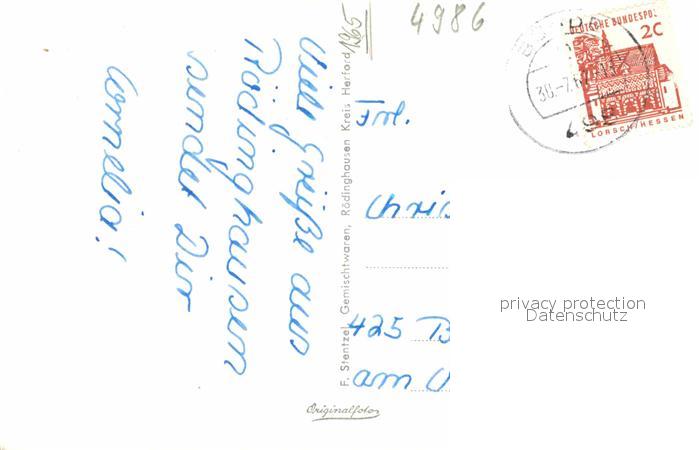 32657325 alte Postkarte Roedinghausen Teilansicht Cafe Fahrtmann Kaufhaus Stenzel Pension Nowatzke postalisch gelaufen Erhaltung siehe scans [AndreD76] KatCode: 11110005758028