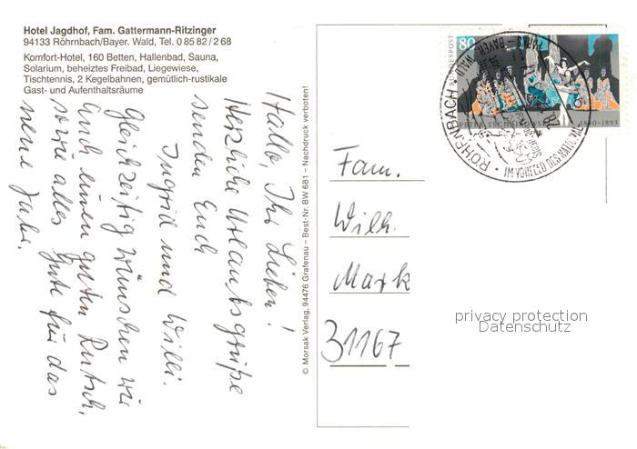 73047448 alte Postkarte Roehrnbach Hotel Jagdhof Bar Gastraeume Schwimmbad postalisch gelaufen Erhaltung siehe scans [WerneD78] KatCode: 11110009272141