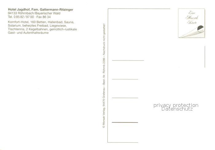 73645704 Roehrnbach Hotel Jagdhof im Bayerischen Wald postalisch nicht gelaufen Erhaltung siehe scans [FriedD77] KatCode: 11110009272141