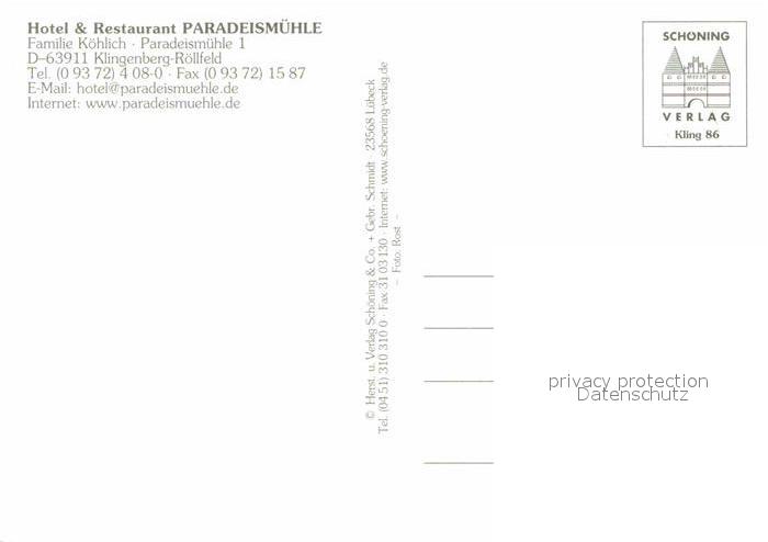 72672986 Roellfeld Hotel Paradeismuehle postalisch nicht gelaufen Erhaltung siehe scans [AndreD76] KatCode: 11110009676134