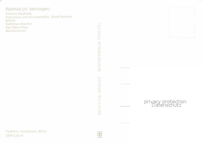 72628506 Roemhild Konsum Kaufhalle Kulturhaus HOG Stadt Roemhild Schloss Suedl Stadttor Karl Marx Platz Marktbrunnen postalisch nicht gelaufen Erhaltung siehe scans [WerneD78] KatCode: 11110016069038