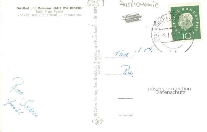 73692472 alte Postkarte Roenkhausen Gasthof Pension Haus Waldesruh Gastraum Panorama postalisch gelaufen Erhaltung siehe scans [WerneD78] KatCode: 11110005966012