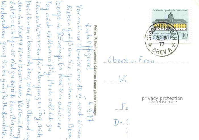 74099516 old postcard Roenninge Sweden Fraelsningsarmen Gaestehm Kungsgarden postalisch gelaufen Erhaltung siehe scans [WerneD78] KatCode: 11460