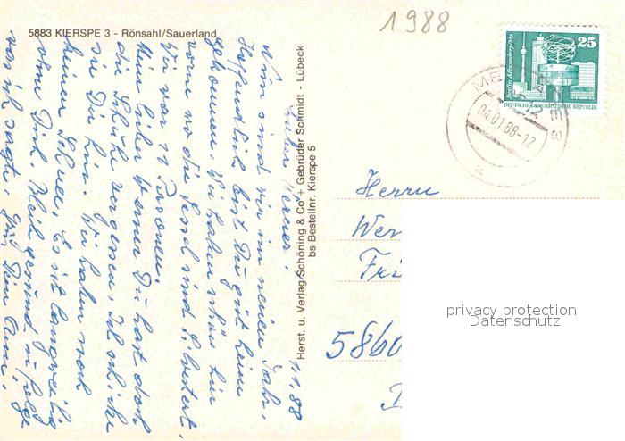 72896430 alte Postkarte Roensahl Kerspe Talsperre postalisch gelaufen Erhaltung siehe scans [LiesaD40] KatCode: 11110005962028