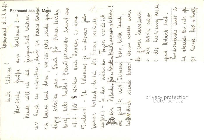 Roermond Fliegeraufnahme postalisch nicht gelaufen Erhaltung siehe scans