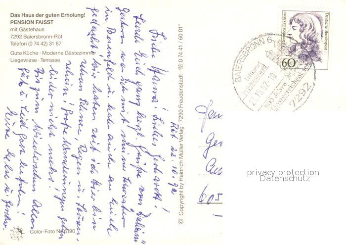 73248228 alte Postkarte Roet Baiersbronn Pension Faisst mit Gaestehaus postalisch gelaufen Erhaltung siehe scans [FriedD77] KatCode: 11110008237004