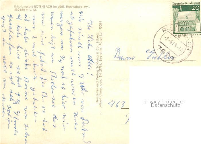 72948828 alte Postkarte Roetenbach Baden Fliegeraufnahme postalisch gelaufen Erhaltung siehe scans [WerneD78] KatCode: 11110008315039