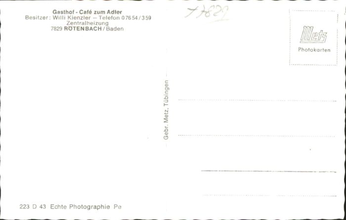 40771656 Roetenbach Baden Gasthof Cafe Adler postalisch nicht gelaufen Alte Ansichtskarte Postkarte Katcode 11110008315039