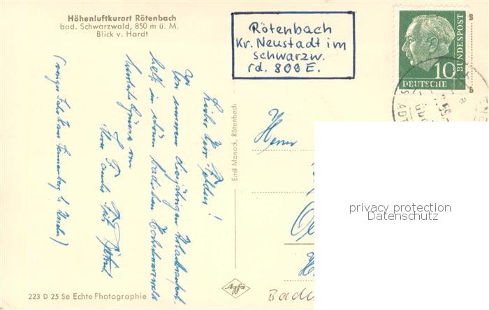 73768339 alte Postkarte Roetenbach Baden Gesamtanischt postalisch gelaufen Erhaltung siehe scans [LiesaD40] KatCode: 11110008315039