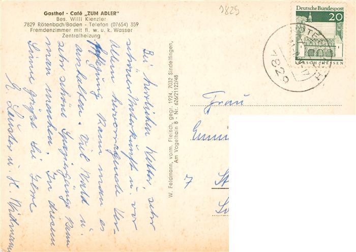 73931355 alte Postkarte Roetenbach Baden Schwarzwald Gasthof Cafe Zum Adler Schwimmbad Gastraeume postalisch gelaufen Erhaltung siehe scans [WerneD78] KatCode: 11110008315039