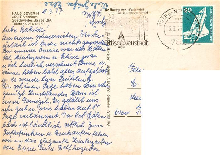 73931331 alte Postkarte Roetenbach Baden Schwarzwald Haus Severin Gaststube Zimmer postalisch gelaufen Erhaltung siehe scans [WerneD78] KatCode: 11110008315039