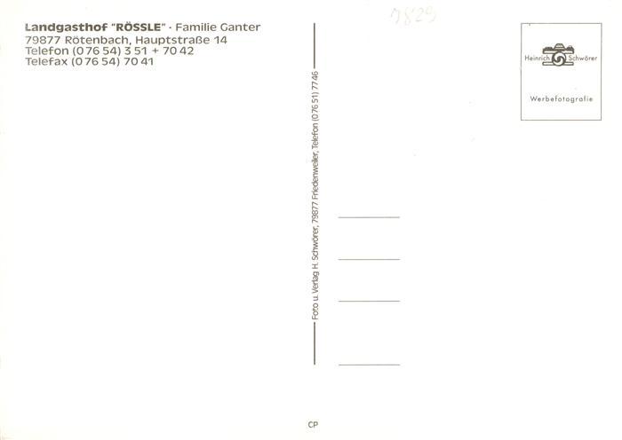 73931336 Roetenbach Baden Schwarzwald Landgasthof Roessle postalisch nicht gelaufen Erhaltung siehe scans [WerneD78] KatCode: 11110008315039