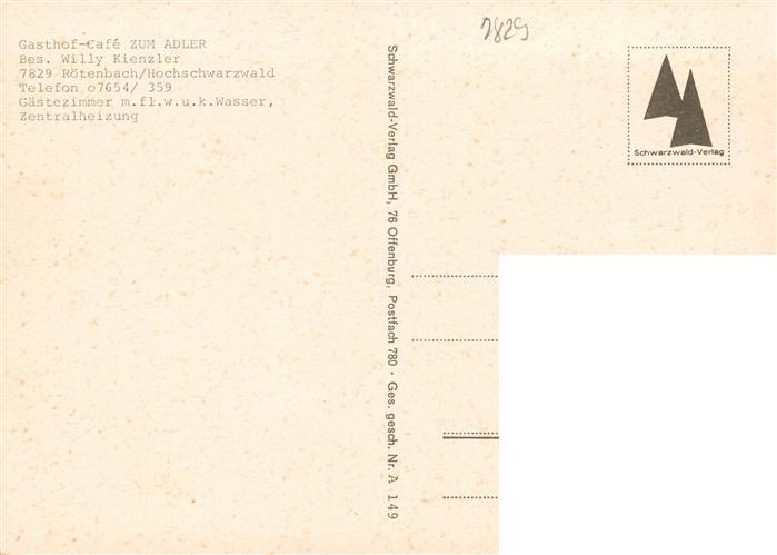 73931188 Roetenbach Baden Schwarzwald Schwarzwaldgasthof Adler Gastraeume Schwimmbad postalisch nicht gelaufen Erhaltung siehe scans [WerneD78] KatCode: 11110008315039