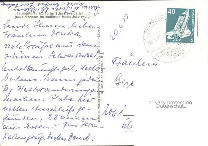 72323859 alte Postkarte Roetenbach Baden Wassermuehle postalisch gelaufen Erhaltung siehe scans KatCode: 11110008315039