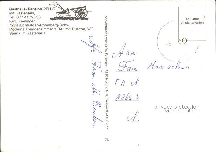 72139566 alte Postkarte Roetenberg Aichhalden Gasthof Pension Pflug Gaststube postalisch gelaufen Erhaltung siehe scans KatCode: 11110008325001