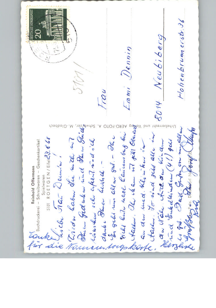 31137054 Roetgen Eifel postalisch nicht gelaufen KatCode: 11110005354024