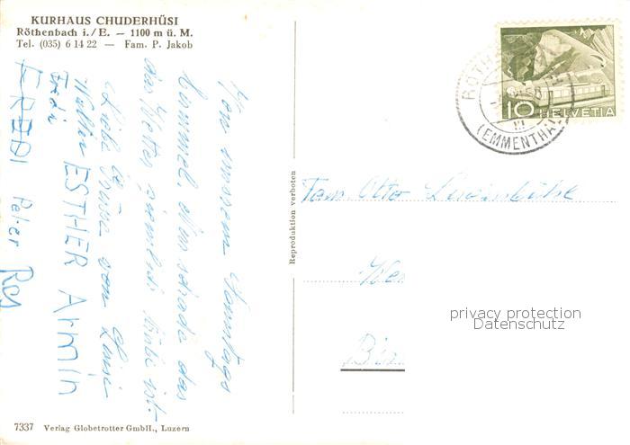 13857990 alte Postkarte Roethenbach Emmental BE Kurhaus Chuderhuesl Alpenblick postalisch gelaufen Erhaltung siehe scans [FriedD77] KatCode: 11470060235720