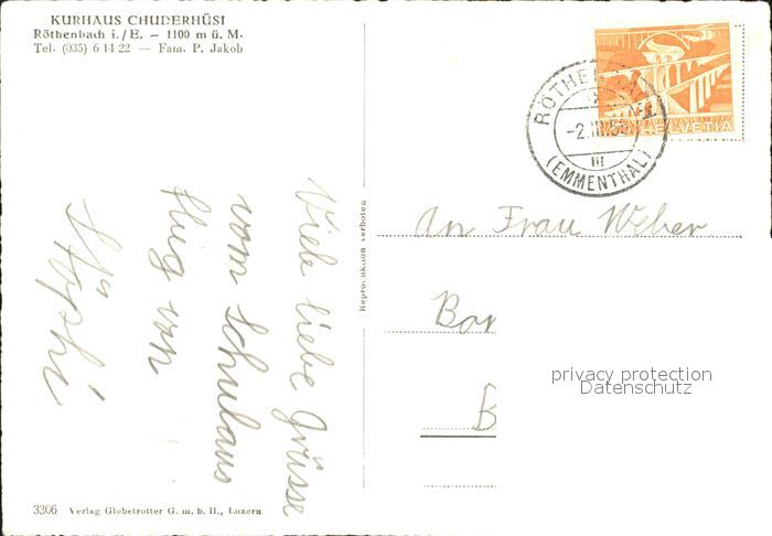 11640036 alte Postkarte Roethenbach Emmental Kurhaus Chuderhuesi postalisch gelaufen Erhaltung siehe scans KatCode: 11470060235720