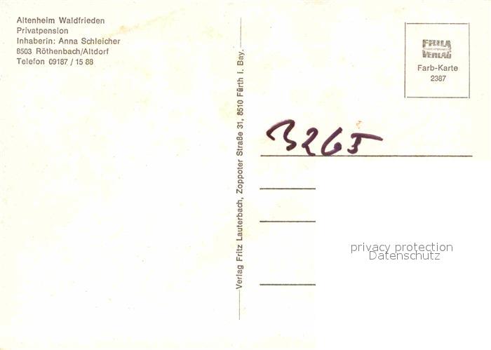 72780925 Roethenbach Nuernberg Altenheim Waldfrieden Privatpension postalisch nicht gelaufen Erhaltung siehe scans [FriedD77] KatCode: 11110009574112