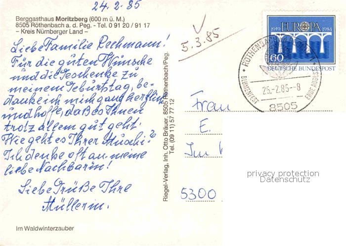 72762179 alte Postkarte Roethenbach Pegnitz Berggasthaus Moritzberg postalisch gelaufen Erhaltung siehe scans [WerneD78] KatCode: 11110009574152