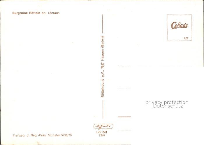 72558764 Roetteln Roettelweiler Burgruine postalisch nicht gelaufen Erhaltung siehe scans [AntonD74] KatCode: 11110008336050