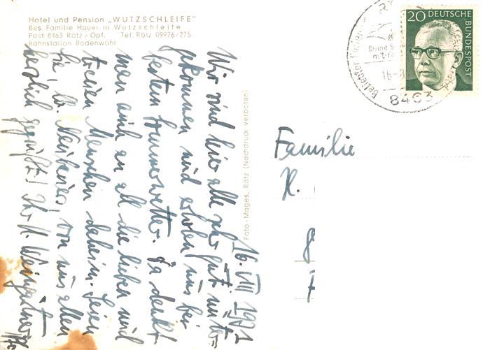 73886018 alte Postkarte Roetz Oberpfalz Hotel Pension Wutzschleife postalisch gelaufen Erhaltung siehe scans [FriedD77] KatCode: 11110009372154