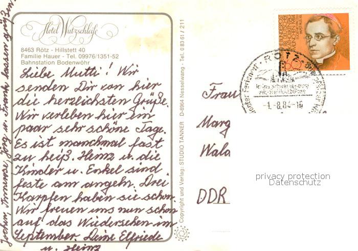 73643374 alte Postkarte Roetz Oberpfalz Hotel Wutzschleife Gastraeume Fliegeraufnahme postalisch gelaufen Erhaltung siehe scans [WerneD78] KatCode: 11110009372154