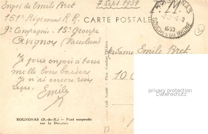13493942 carte postale Rognonas Pont suspendu sur la Durance postalisch gelaufen Erhaltung siehe scans [WerneD78] KatCode: 11170013213083