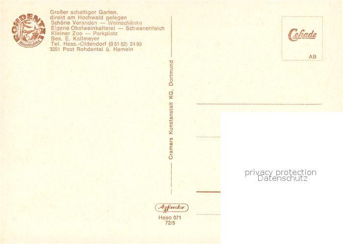 73724445 Rohdental Hessisch Oldendorf Weinschaenke Rohdental Waldbad Kaffeegarten Hohenstein postalisch nicht gelaufen Erhaltung siehe scans [WerneD78] KatCode: 11110003252007
