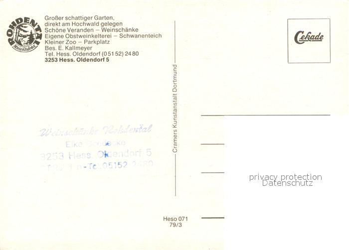 73724450 Rohdental Hessisch Oldendorf Weinschaenke Rohdental Waldbad Kaffeegarten Hohenstein postalisch nicht gelaufen Erhaltung siehe scans [WerneD78] KatCode: 11110003252007