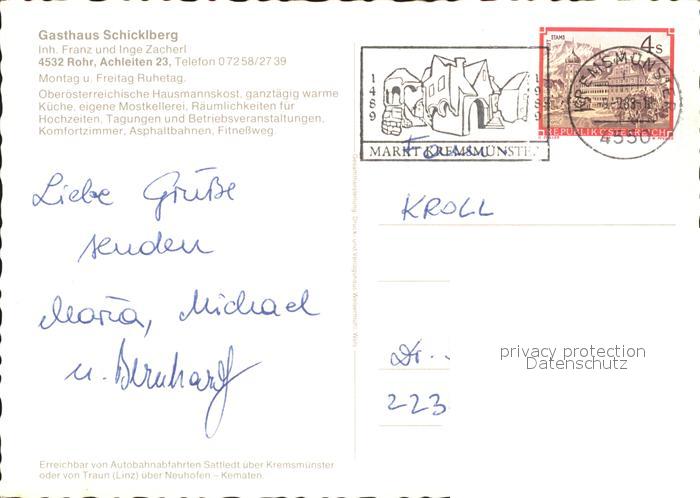 71928534 alte Postkarte Rohr Kremstal Gasthaus Schicklberg postalisch gelaufen Erhaltung siehe scans KatCode: 11390314041513