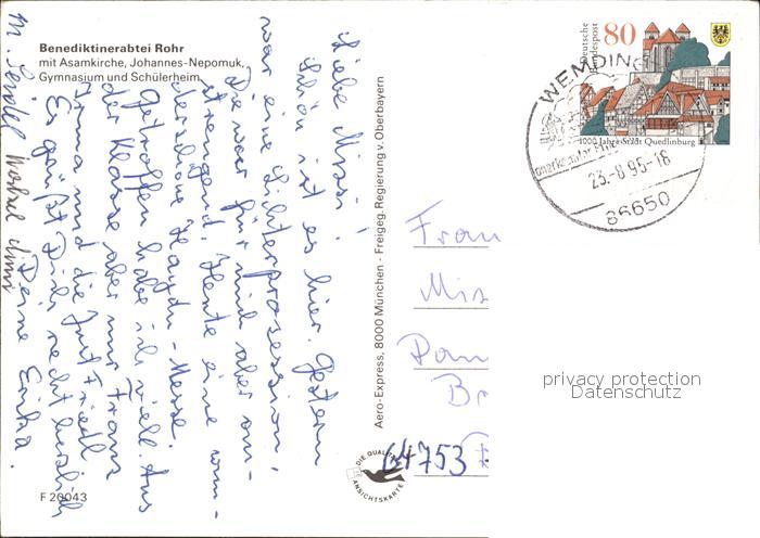 72494095 alte Postkarte Rohr Niederbayern Benediktinerabtei Rohr Asamkirche Johannes-Nepomuk postalisch gelaufen Erhaltung siehe scans KatCode: 11110009273165