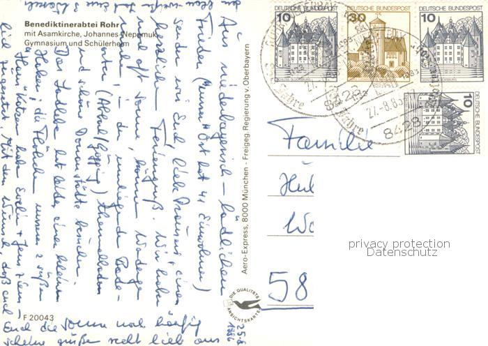 73779911 alte Postkarte Rohr Niederbayern Benediktinerabtei Rohr mit Asamkirche Joh Nepomuk Gymnasium und Schuelerheim postalisch gelaufen Erhaltung siehe scans [WerneD78] KatCode: 11110009273165