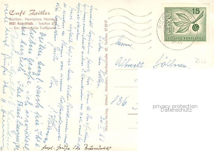 73574836 alte Postkarte Rohr Niederbayern Cafe Zeitler Ortsansicht mit Kirche postalisch gelaufen Erhaltung siehe scans [FriedD77] KatCode: 11110009273165