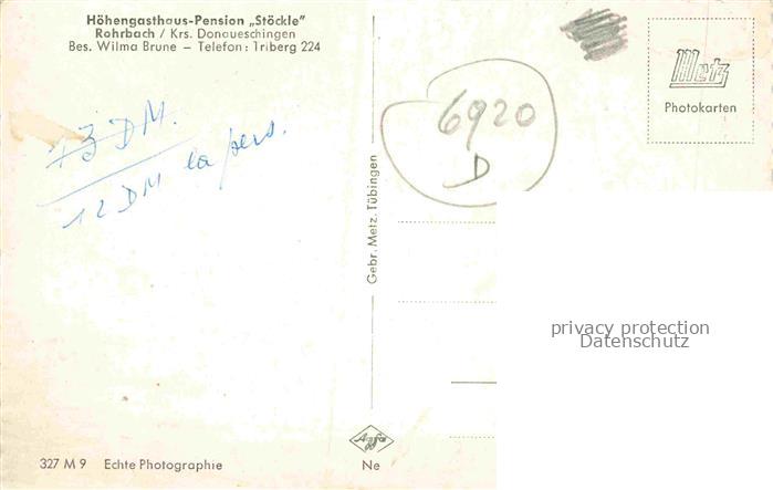 74110525 Rohrbach Furtwangen BW Hoehengasthaus Pension Stoeckle Winterlandschaft Schwarzwald postalisch nicht gelaufen Erhaltung siehe scans [FriedD77] KatCode: 11110008326017
