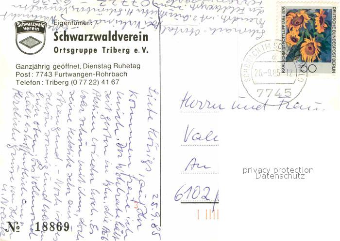 72816623 alte Postkarte Rohrbach Furtwangen Stoecklewaldturm postalisch gelaufen Erhaltung siehe scans [AndreD76] KatCode: 11110008326017