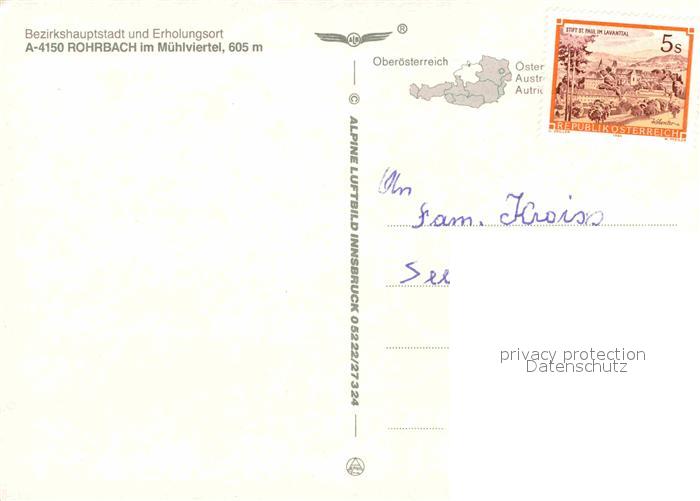 12776453 alte Postkarte Rohrbach Oberoesterreich Fliegeraufnahme postalisch gelaufen Erhaltung siehe scans [WerneD78] KatCode: 11390313041330