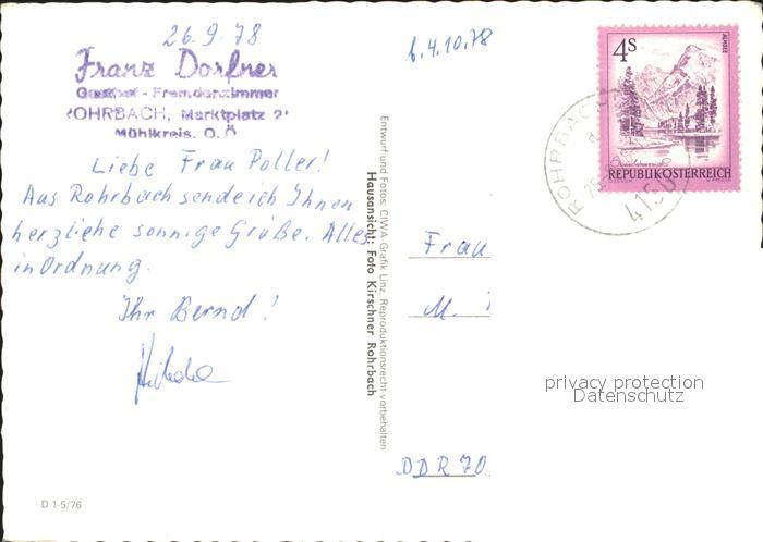 71860028 alte Postkarte Rohrbach Oberoesterreich Gasthof Franz Dorfner postalisch gelaufen Erhaltung siehe scans KatCode: 11390313041330