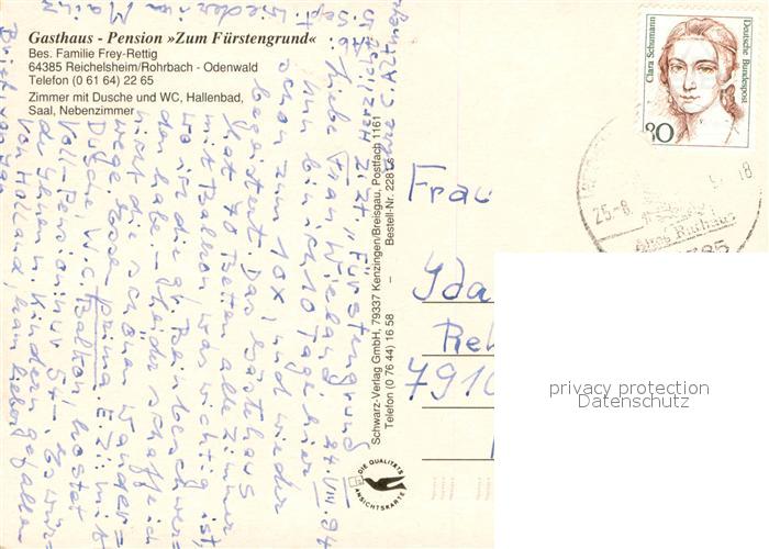73726770 alte Postkarte Rohrbach Reichelsheim Gasthaus Pension zum Fuerstengrund Panorama postalisch gelaufen Erhaltung siehe scans [FriedD77] KatCode: 11110006437013