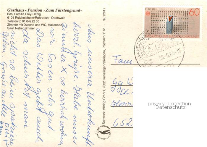 73730717 alte Postkarte Rohrbach Reichelsheim Gasthaus Pension Zum Fuerstengrund Panorama postalisch gelaufen Erhaltung siehe scans [FriedD77] KatCode: 11110006437013