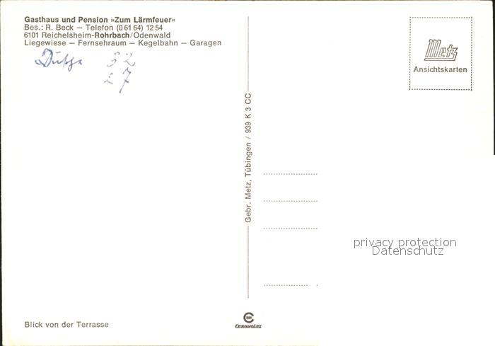 71907603 Rohrbach Reichelsheim Gasthaus-Pension Zum Laermfeuer postalisch nicht gelaufen Erhaltung siehe scans KatCode: 11110006437013