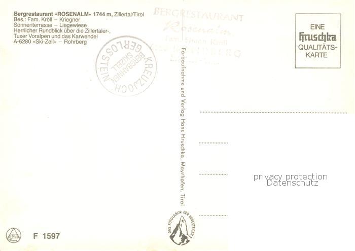 73027682 Rohrberg Tirol Bergrestaurant Rosenalm postalisch nicht gelaufen Erhaltung siehe scans [KathaD81] KatCode: 11390335070924