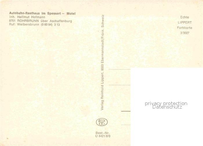 72819710 Rohrbrunn Autobahn-Rasthaus postalisch nicht gelaufen Erhaltung siehe scans [NatalD47] KatCode: 11110009671157