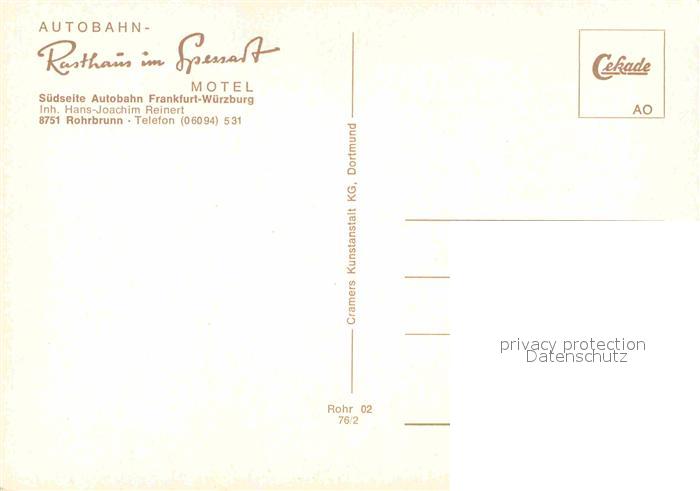 72806671 Rohrbrunn Autobahn Rasthaus im Spessart Motel postalisch nicht gelaufen Erhaltung siehe scans [FriedD77] KatCode: 11110009671157