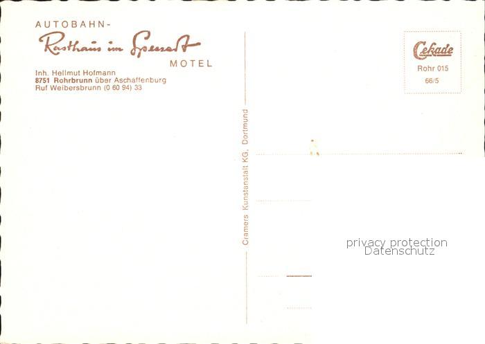 72478149 Rohrbrunn Autobahn Rasthaus im Spessart Motel postalisch nicht gelaufen Erhaltung siehe scans KatCode: 11110009671157