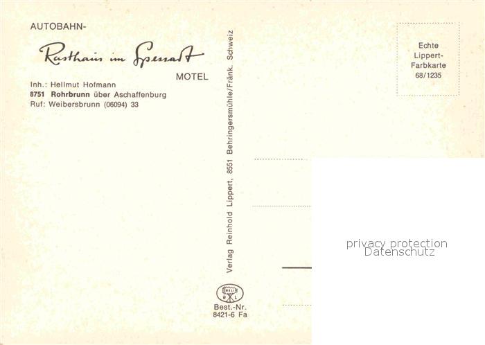 72909157 Rohrbrunn Autobahn Rasthaus im Spessart Motel Wildschweine Damwild Waldpartie postalisch nicht gelaufen Erhaltung siehe scans [FriedD77] KatCode: 11110009671157