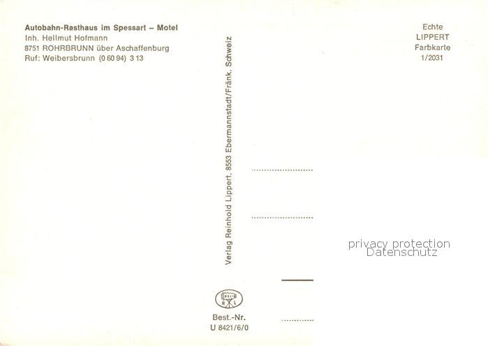 73159271 Rohrbrunn Autobahn Rasthaus im Spessart Motel Wildschweinrotte Rotwild postalisch nicht gelaufen Erhaltung siehe scans [WerneD78] KatCode: 11110009671157